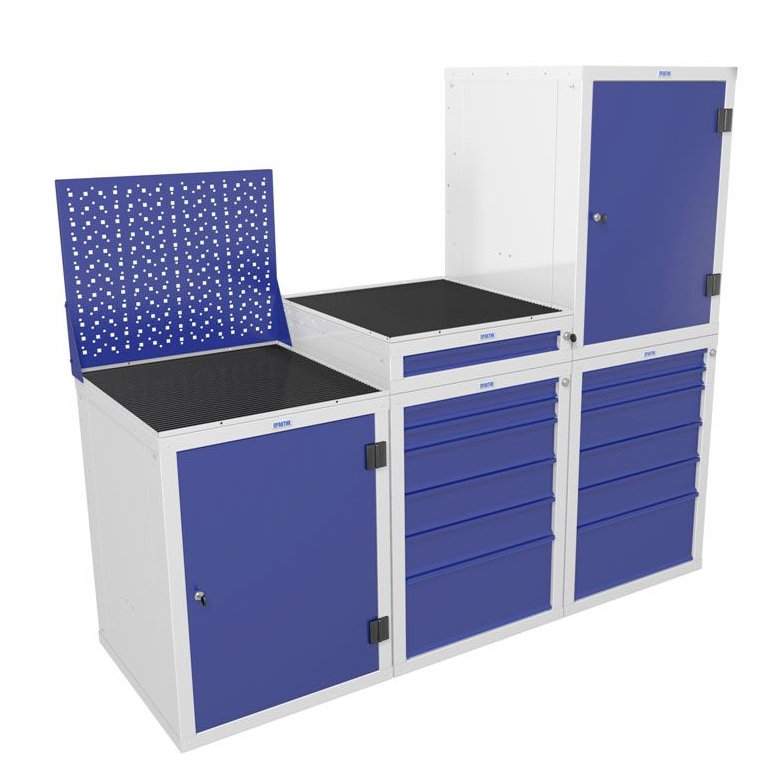 корпус серый полуматовый (RAL 7038), двери синие (RAL 5002)