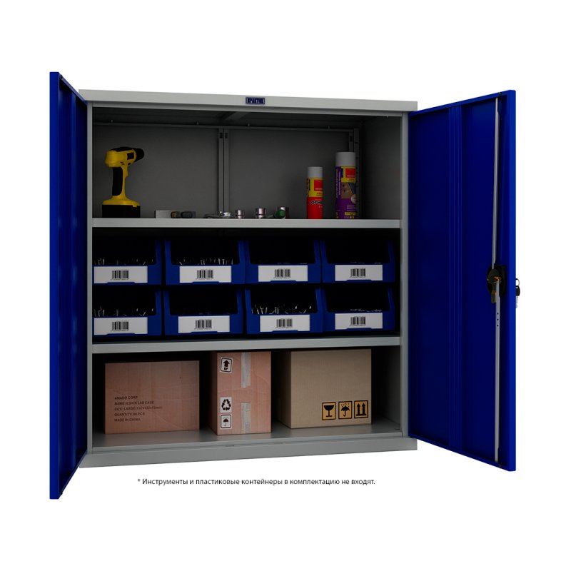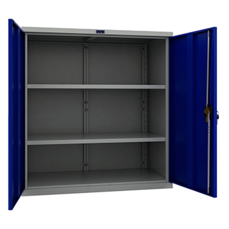 Cерый полуматовый (RAL 7038), двери синие (RAL 5002)