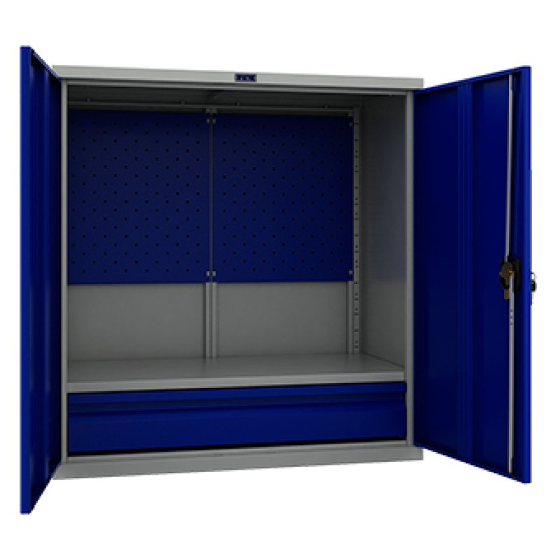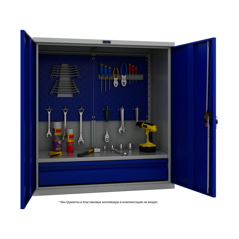 Cерый полуматовый (RAL 7038), двери синие (RAL 5002)