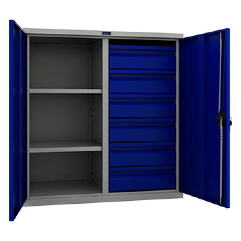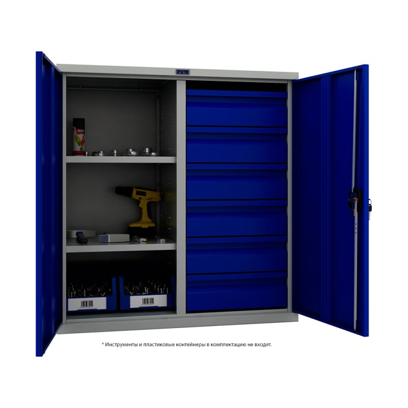 Cерый полуматовый (RAL 7038), двери синие (RAL 5002)