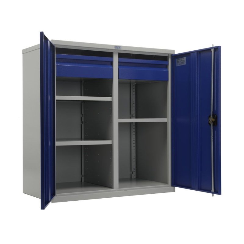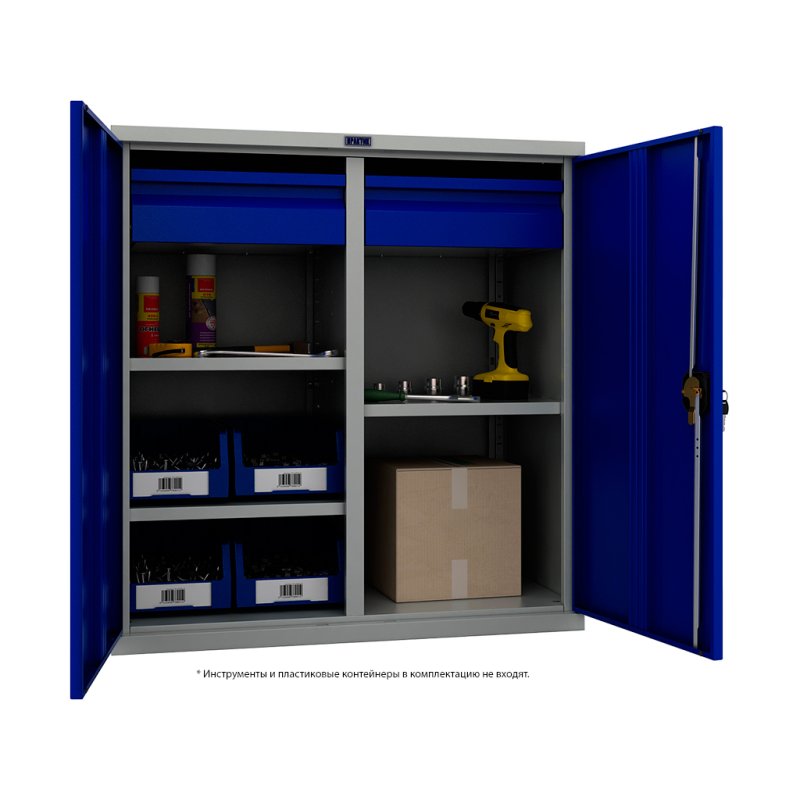 Cерый полуматовый (RAL 7038), двери синие (RAL 5002)