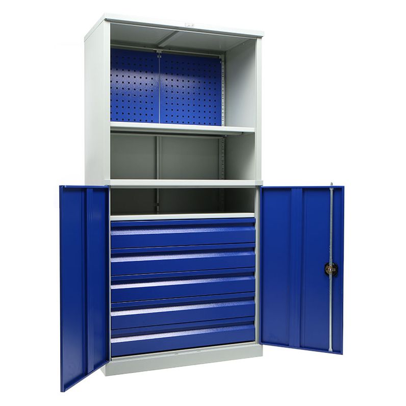 cерый полуматовый (RAL 7038), двери синие (RAL 5002)