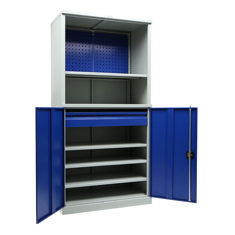 cерый полуматовый (RAL 7038), двери синие (RAL 5002)