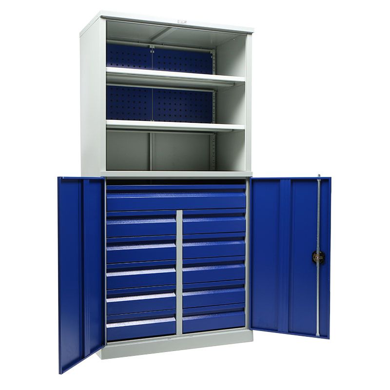 cерый полуматовый (RAL 7038), двери синие (RAL 5002)