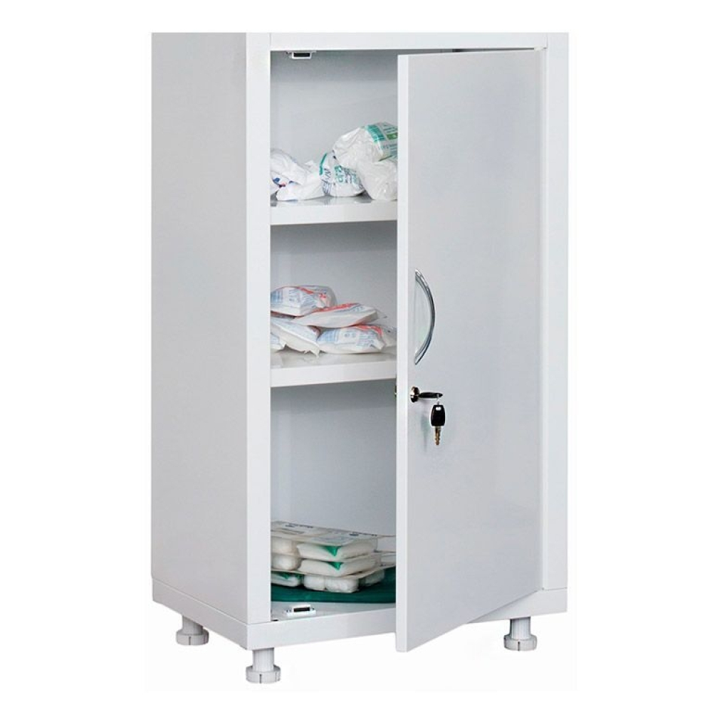 Шкаф медицинский HILFE MD 1 1657/SG отлично подойдет для размещения лекарственных препаратов, инструментов или документации в учреждениях здравоохранения. Корпус изготовлен из стали и покрыт порошковой краской. Верхний отдел ниши оборудован двумя полками из каленого стекла и закрывается стеклянной дверью с магнитными защелками. Нижний отдел оборудован стальной дверью с ключевым замком и двумя полками из металла. Опоры шкафа могут регулироваться по высоте.