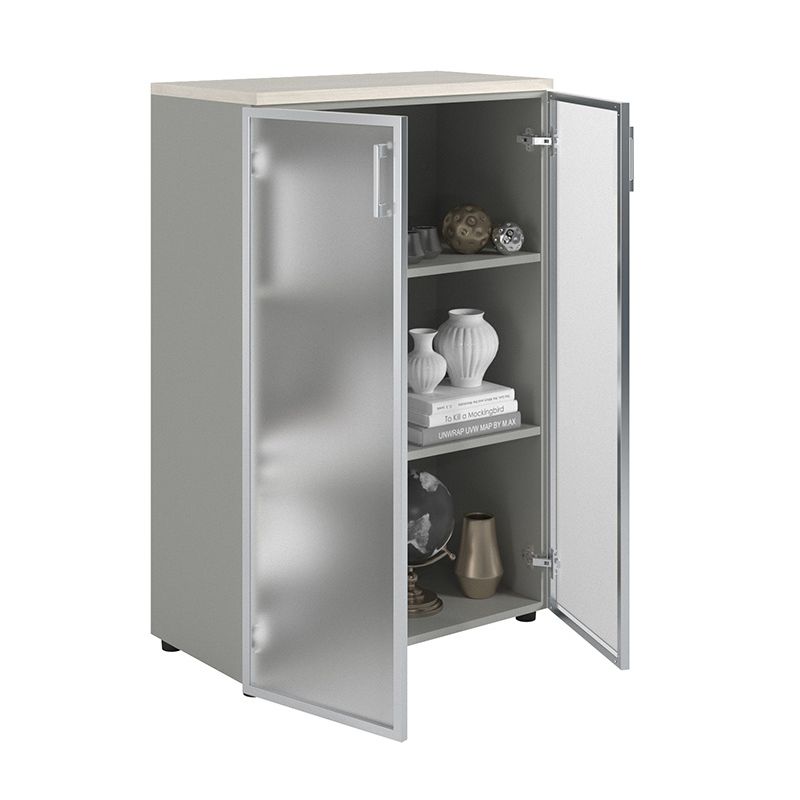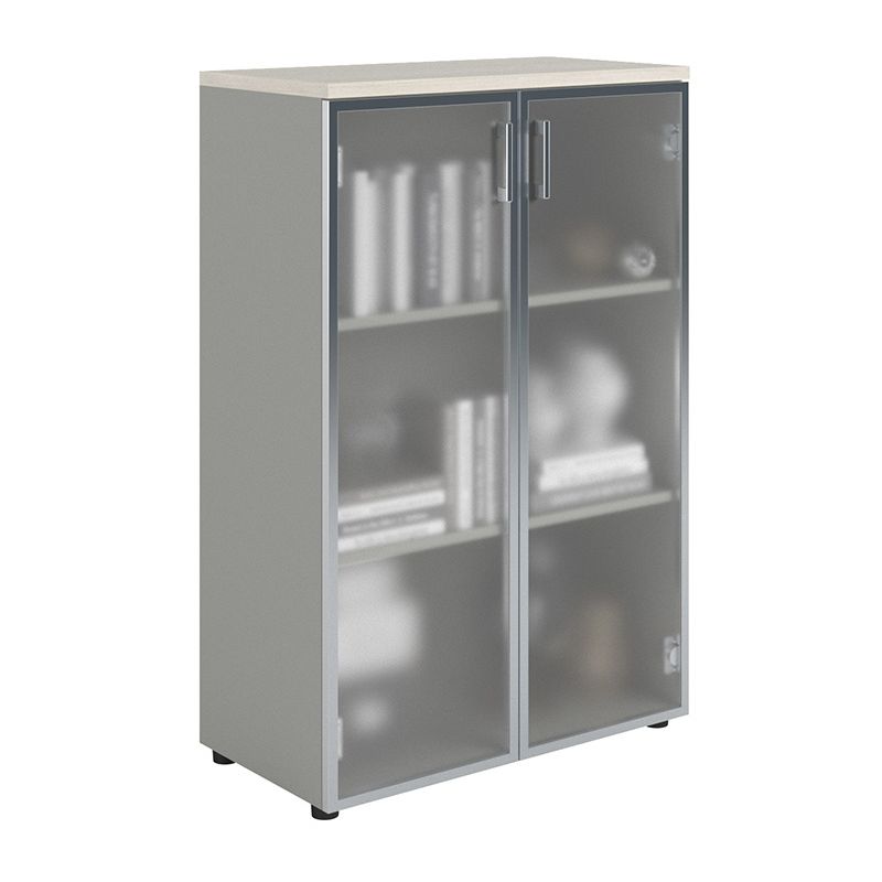 Шкаф NW 2080/2G со стеклом белое дерево/серый