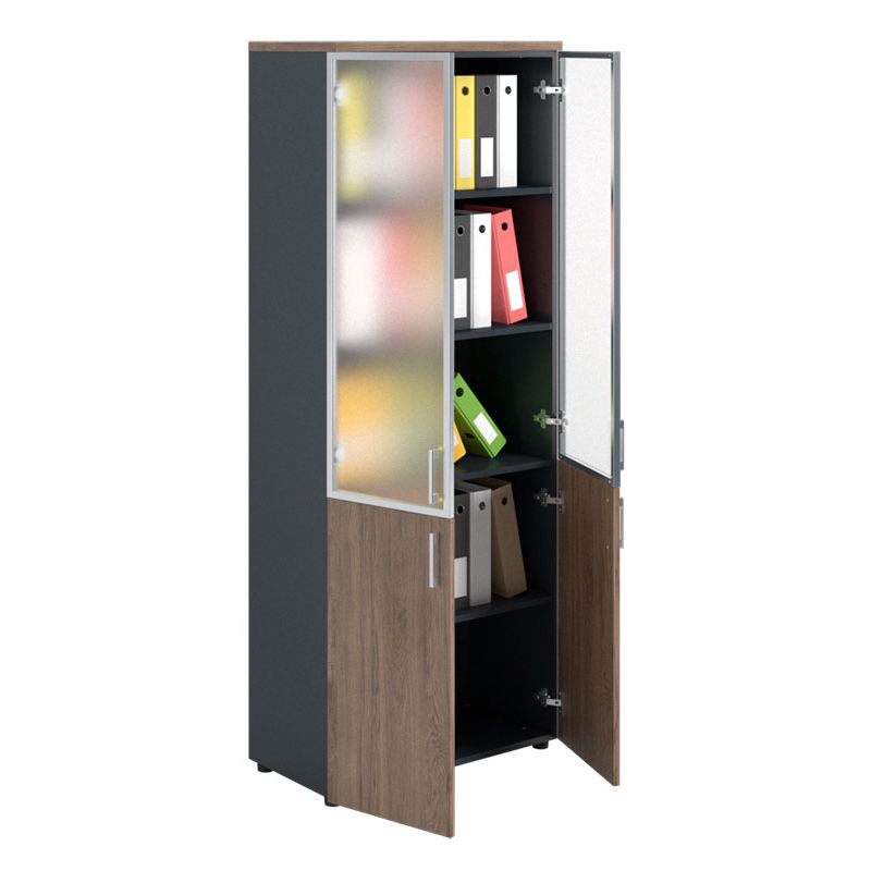 Шкаф NW 2080/2G со стеклом темный орех/антрацит