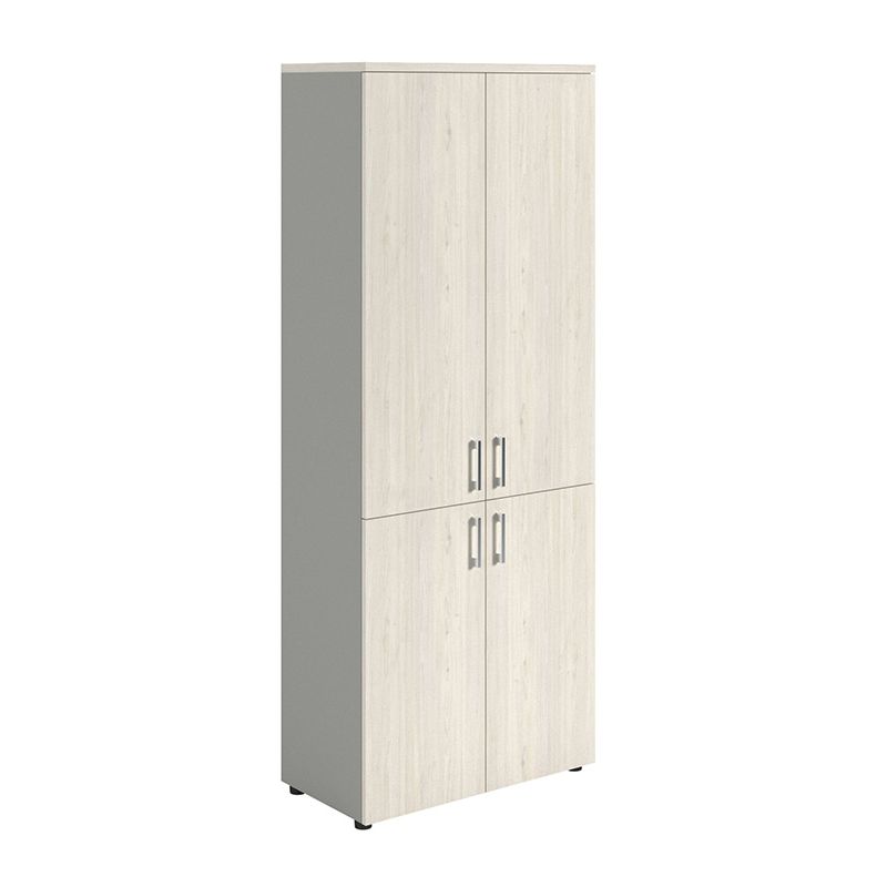 Шкаф NW 2080/4 закрытый белое дерево/серый станет стильным акцентом в любом интерьере. Конструкция из ЛДСП с толщиной 16 мм и эксцентриковыми стяжками обеспечивает надежность и долговечность, а фасады, оформленные специальной лазерной ABS кромкой, придают мебели современный вид, усиливая защиту от влаги и температуры.
