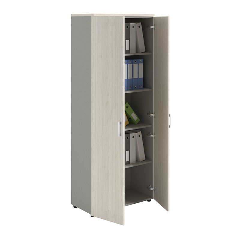 Шкаф NW 2080/2G со стеклом белое дерево/серый