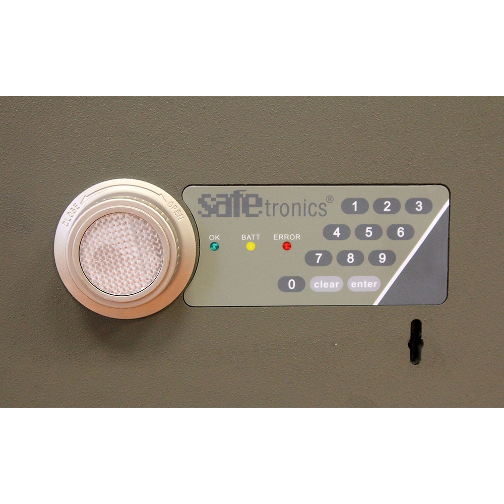 Толщина лицевой панели составляет 10мм. Задняя и боковые стены состоят из двух слоев стали толщиной 3мм и специального материала SMREKOLIT толщиной 10мм, и, благодаря этому, данная серия сейфов соответствуют 1 классу защиты от взлома и обеспечивают начальную защиту от пожара. Взломостойкие сейфы серии NTR оснащаются кодовыми механическими замками LA GARD (США), ключевыми MAUER (Германия), электронными замками SAFEtronics (Словакия). Область замка сейфов защищена двумя пластинами из маргонцевистой стали, защищающими замок сейфа от высверливания. Сейфы серии NTR сертифицированы по европейскому стандарту EuroVDS (Германия), чешскому CSN-9160010 и российскому ГОСТ Р-50862-96 - 1 классу защиты от взлома. Глубина сейфа указана без учета ручки.